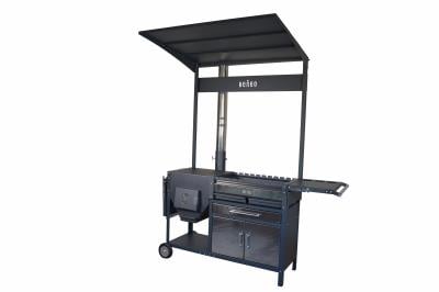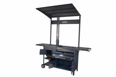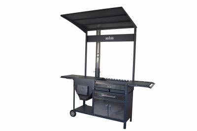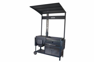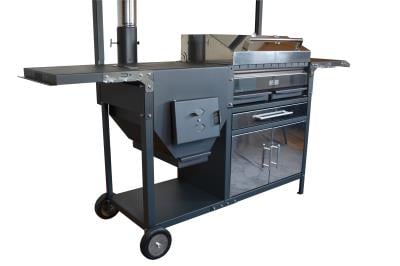 <p>Повністю розбірна, полегшує процес транспортування та зберігання мангалу у період, коли він не використовується<br /> - всі деталі обв'язки покриті в два шари порошковою фарбою<br /> - нижня полиця для зберігання<br /> - бічні відкидні столики з ложементом для баночок та пляшок та тримачем шампурів<br /> - висувний ящик для зберегання інструментів для грилю<br /> - дверцята з нержавіючої сталі та органайзер для спецій<br /> - тримач інструментів<br /> - колеса та рукоятка для переміщення  печі мангалу <br /> - дах від негоди із жолобом для стоку води<br /> - надійна фіксація жаровні забезпечує загальну жорсткість усієї конструкції<br /> - у цій комплектації є двері з магнітною фіксацією та висувний ящик із доводчиком.</p>