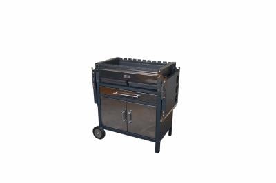 Мангал PREMIUM – представитель премиальной серии и лидер продаж среди профессиональных мангалов. Конструкция частично разборная, поэтому устройство удобно хранить и транспортировать. Особенность конструкции – в двух раскладных столах с обеих сторон мангала. На них можно резать и хранить продукты, также оборудованы дополнительными вешалками.Мангал имеет удобный выдвижной ящик для хранения необходимых вещей для приготовления, а надежная, удобная дверца из нержавеющей стали с дополнительной полочкой для ваших любимых специй, будут всегда уместны! Жаровня выполнена из стали с огнеупорным покрытием. Имеет два зольных ящика, потому что этот мангал премиум класса рассчитан на приготовление блюд на шампурах и решетке-гриль одновременно. Универсальная модель мангала PREMIUM поразит даже профессиональных шеф-поваров.