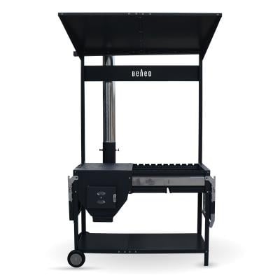 Долговечность мангала обеспечивается следующими параметрами: толщина стали, огнеупорное покрытие, трапециевидный профиль стенок и отгибы. Отгибы по торцевым стенкам противостоят общей деформации. Сочетание высоты жаровни 15 сантиметров, трапециевидного профиля и расстояния от еды до угля в 5 - 7 см, а также утепленные стенки образуют камеру для жарки, которая создает оптимальные условия для приготовления мяса и овощей. При этом толщина слоя угля должна составлять 3-5 сантиметра. В этой комплектации есть крыша от дождя и солнца. Габариты крыши позволяют переместить весь мангал полностью, без разбора крыши, например, в гараж. Печь также оборудована зольным ящиком, самозакрывающейся дверью с регулировкой подачи воздуха, шибером дымохода и держателем крышки казана. В печи три кольца, самый большой диаметр (390мм.) идеально подходит под 12л. казан