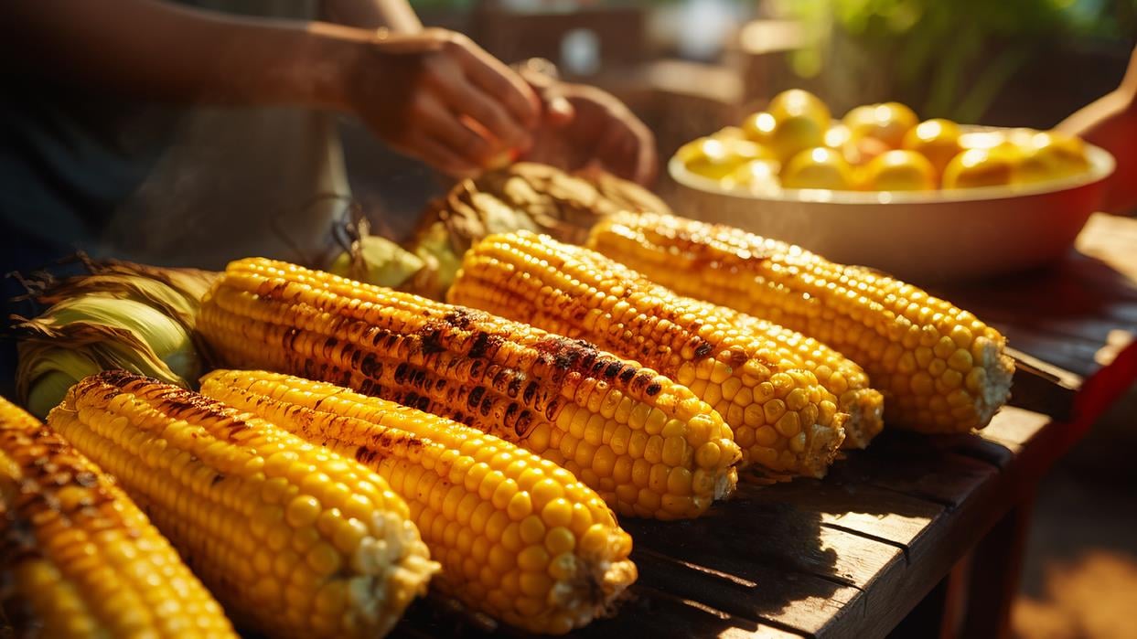 Сладкая кукуруза на гриле — идеальный летний гарнир. Её можно запекать прямо в листьях или завернуть в фольгу с маслом, чесноком и специями. Через 15 минут на среднем жаре зёрна станут мягкими и ароматными, зберігаючи природну солодкість.